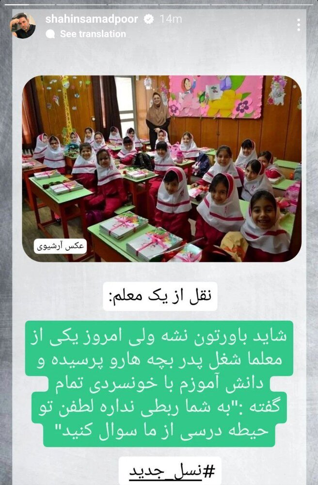 شاهین صمدپور، خبرنگار به نقل از یکی از معلمان در صفحه شخصی خود نوشت:
