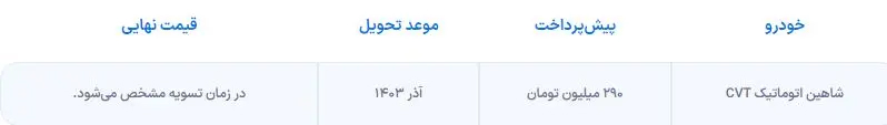 مبلغ پیش پرداخت شاهین اتوماتیک