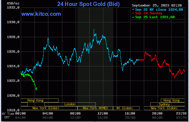 به گزارش سایت طلا،فلز زرد در معاملات روز دوشنبه در آسیا بالاتر از 1920 دلار معامله می‌شود. شاخص بالای دلار و افزایش سود اوراق قرضه خزانه‌داری آمریکا مانع افزایش قیمت طلاست.