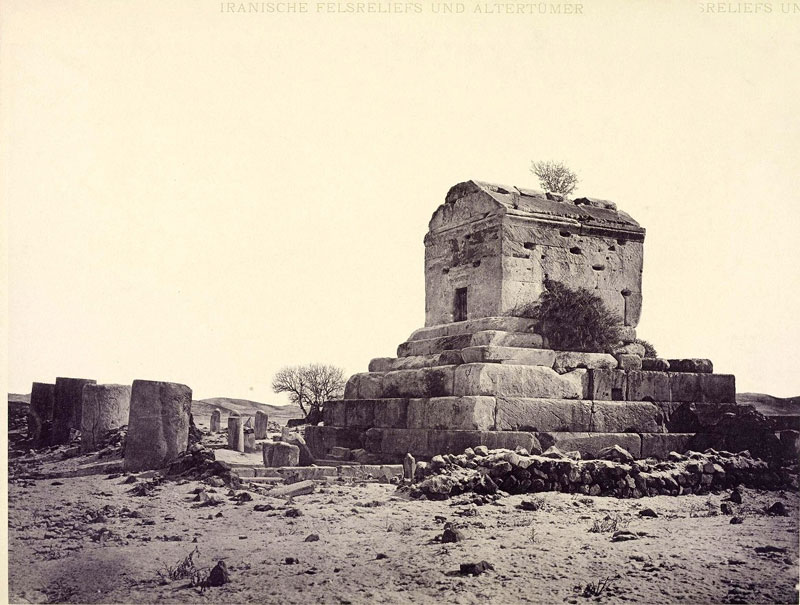 در سمت چپ عکس زیر که بیش از یک قرن قبل گرفته شده، میتوان آثار ستونهایی را دید که زمانی اطراف مقبرۀ کوروش هخامنشی را در احاطۀ خود داشتند.