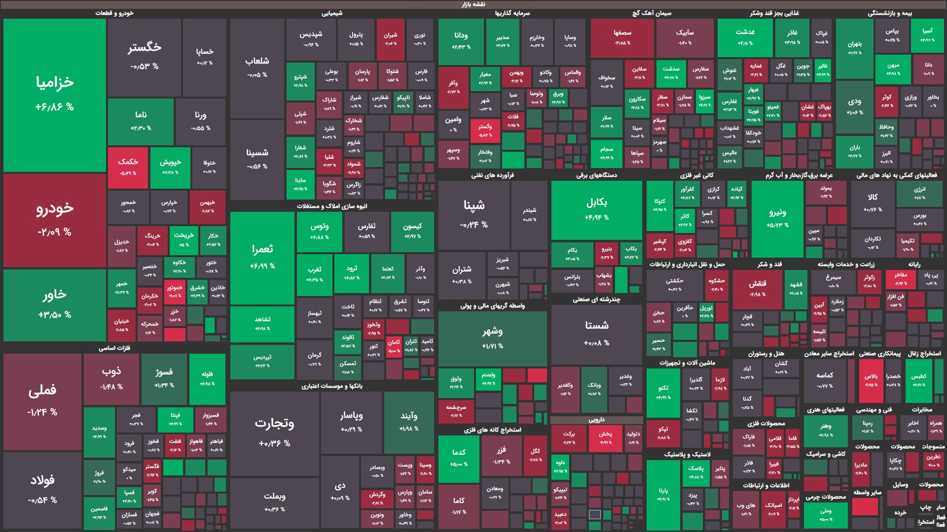 ارزش معاملات بورس تهران امروز به حدود رقم ۲ هزار و ۱۵ میلیارد تومان رسید. فملی، کگل و فولاد سه نمادی بودند که بیشترین تاثیر را در شاخص داشتند و تکاردان، خزامیا و خودرو سه نماد پرتراکنش بودند.