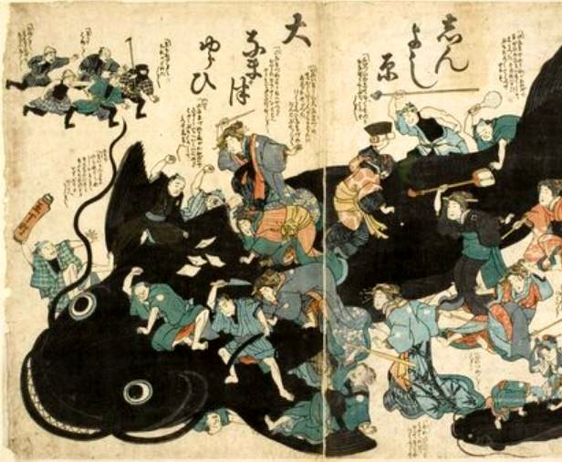 به نقل از افسانه‌های ژاپنی، گربه ماهی غول پیکر نامازو در زیر معبد کاشیما در استان هیتاچی زندگی می‌کند و هر زمان که حرکت می‌کند باعث زمین‌لرزه می‌شود.