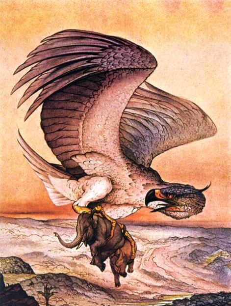 در افسانه‌های عربی، سندباد دریانورد، پرنده‌ای به نام راک، فیلی را با چنگال‌های خود از روی زمین بلند می‌کند. الهام‌بخش این موجود بالدار غول‌پیکر شاید یک پرنده ماقبل تاریخ از ماداگاسکار باشد که بیش از ده فوت ارتفاع داشت.
