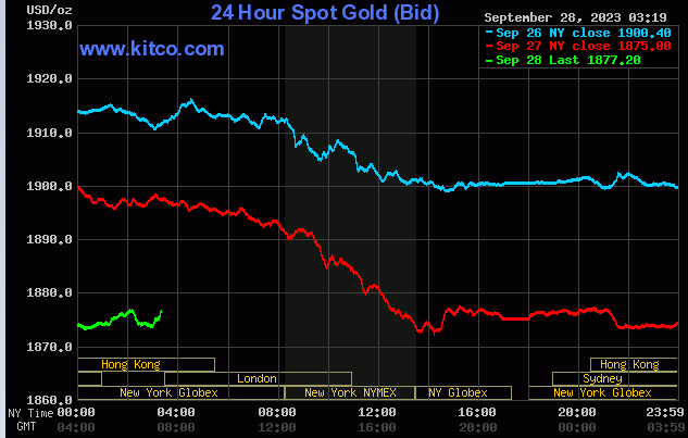 قیمت طلا امروز به کمترین میزان خود در بیش از یک ماه اخیر رسید، چراکه دورنمای بالا ماندن نرخ بهره آمریکا به مدت طولانی‌تر باعث رشد ارزش دلار شده است.