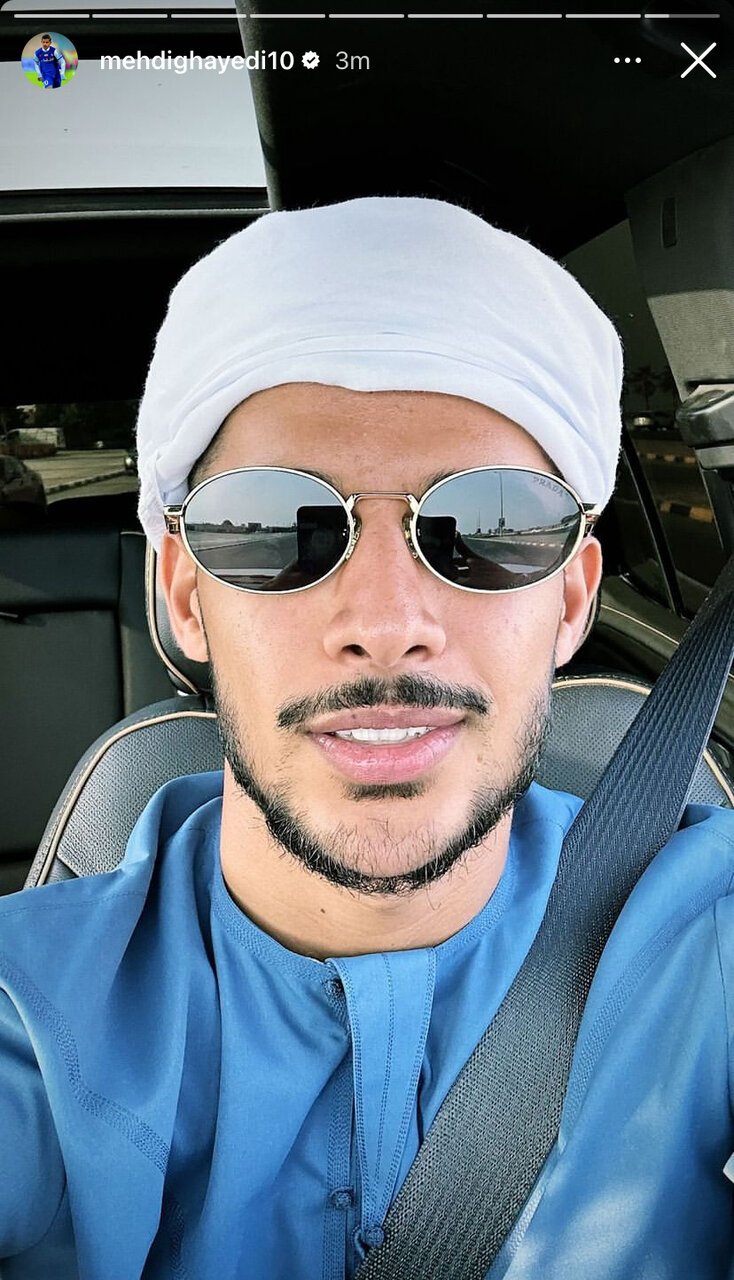 مهدی قایدی، ستاره ایرانی تیم اتحاد کلباء امارات یک استوری از خودش با لباس عربی منتشر کرد.