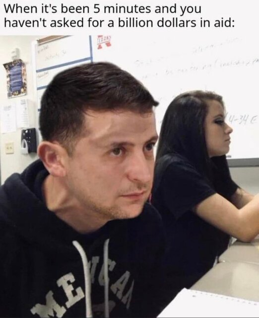 ماسک روز دوشنبه با انتشار یک «میم» از زلنسکی در شبکه اجتماعی خودش به نام «ایکس» که پیشتر آن را با نام توییتر میشناختند، نوشت «وقتی ۵ دقیقه گذشته است و شما یک میلیارد دلار کمک نخواستهاید!»