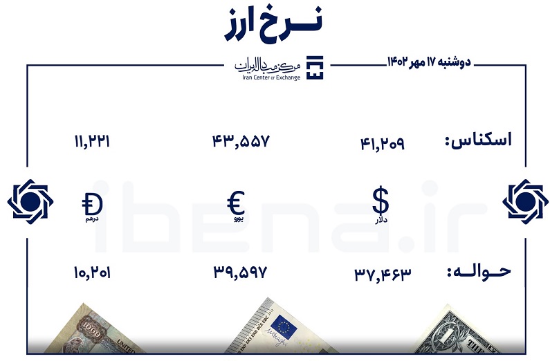 بانک مرکزی امروز دوشنبه (۱۷ مهر ماه)، نرخ هر پوند را ۵۱ هزار و ۴۰۷ ریال و یورو را ۴۴ هزار و ۳۹۲ ریال اعلام کرد.