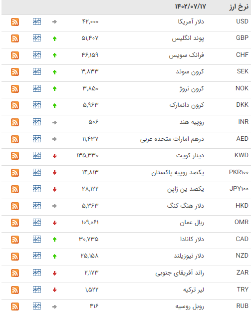 نرخ رسمی درهم امارات عربی متحده، یکصد دینار عراق و افغانی افغانستان هم بدون تغییرباقی ماند.