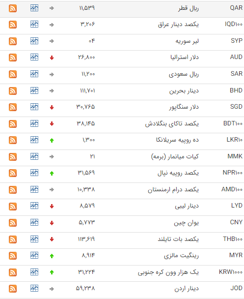 بر این اساس نرخ رسمی پوند انگلیس و دلار کانادا افزایش و نرخ یورو، دلار استرالیا، یوان چین، یکصد ین ژاپن و لیر ترکیه کاهش یافت.