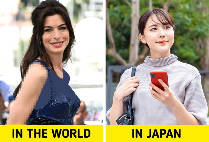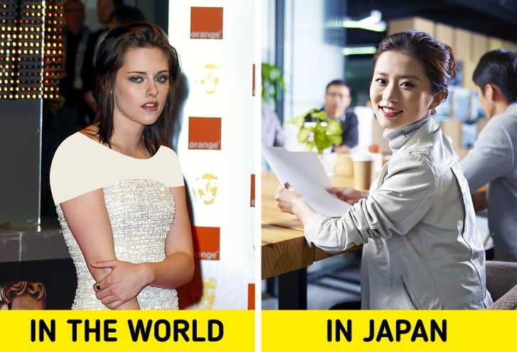 در ژاپن داشتن یک پوشش موقرانه یک هنجار محسوب می شود و زن ها، به ویژه زنان بزرگسال اغلب شانه و شکم خود می پوشانند، حتی در هوای گرم. آن ها برای در امان ماندن از نور خورشید، دستکش های بلند به دست و از چتر استفاده می کنند. به همین دلیل، گردشگرانی که لباس بازی به تن می کنند ممکن است با نگاه متعجب مردم مواجه شوند. لازم به ذکر است که دختران کم و سن تر ژاپنی گاهی این رسم را زیر پا می گذارند و دامن کوتاه و شلوارک به تن می کنند، حتی در هوای سرد.