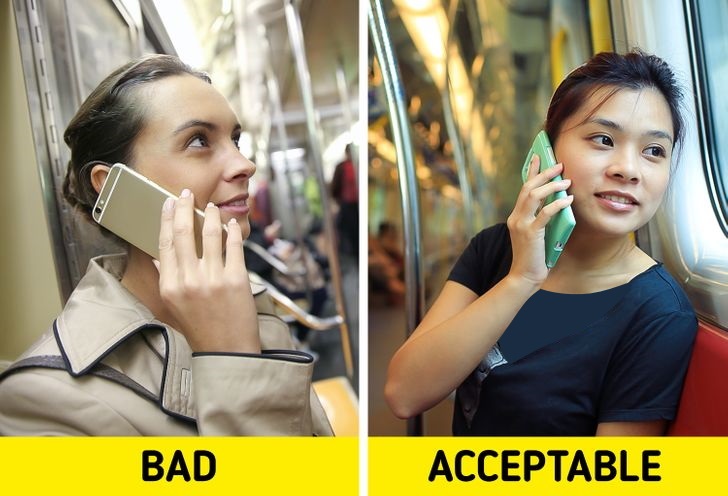 ژاپنی ها با اینکه ترجیح می دهند غذای خود را در سر و صدا بخورند، اما از کسانی که در مکان های عمومی بلند صحبت می کنند خوش شان نمی آید. به همین دلیل بهتر است در مکان های عمومی از صحبت کردن با صدای بلند یا با حرکات دست زیاد خودداری کنید، چون به نظر ژاپنی ها زیاد از حد پر سر و صدا خواهید آمد. هنگام استفاده از وسایل نقلیه ی عمومی، بخصوص اگر چند مسافر هم باشد، بهتر است از صحبت با تلفن همراه خودداری کنید. البته این امر تنها محدود به مکان های عمومی نیست و برای مثال، در محل اقامت خود هم باید از ایجاد سر و صدا پرهیز کنید.