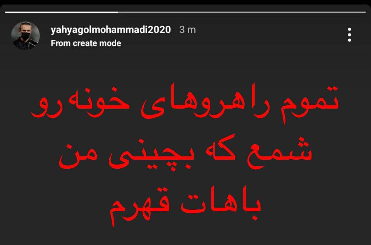 استوری یحیی گل محمدی خطاب به مدیرعامل پرسپولیس را در ادامه می بینید.