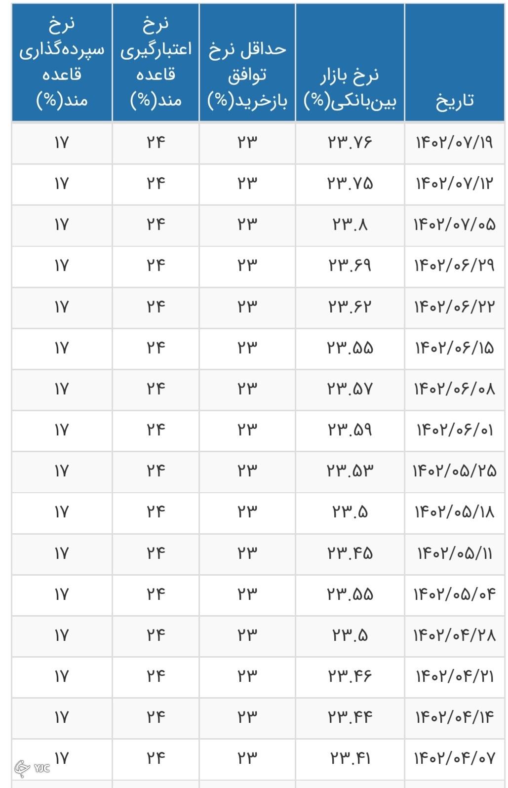 جدیدترین نرخ بهره بین بانکی اعلام شد+جدول