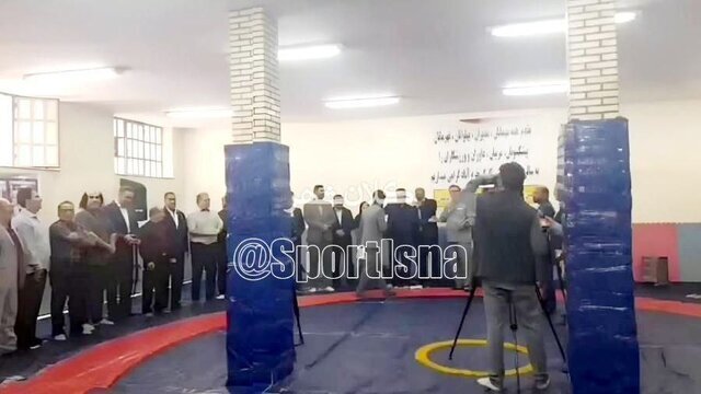 ماجرای عجیب افتتاح سالن کشتی در لرستان با دو ستون در وسط تشک!+ عکس