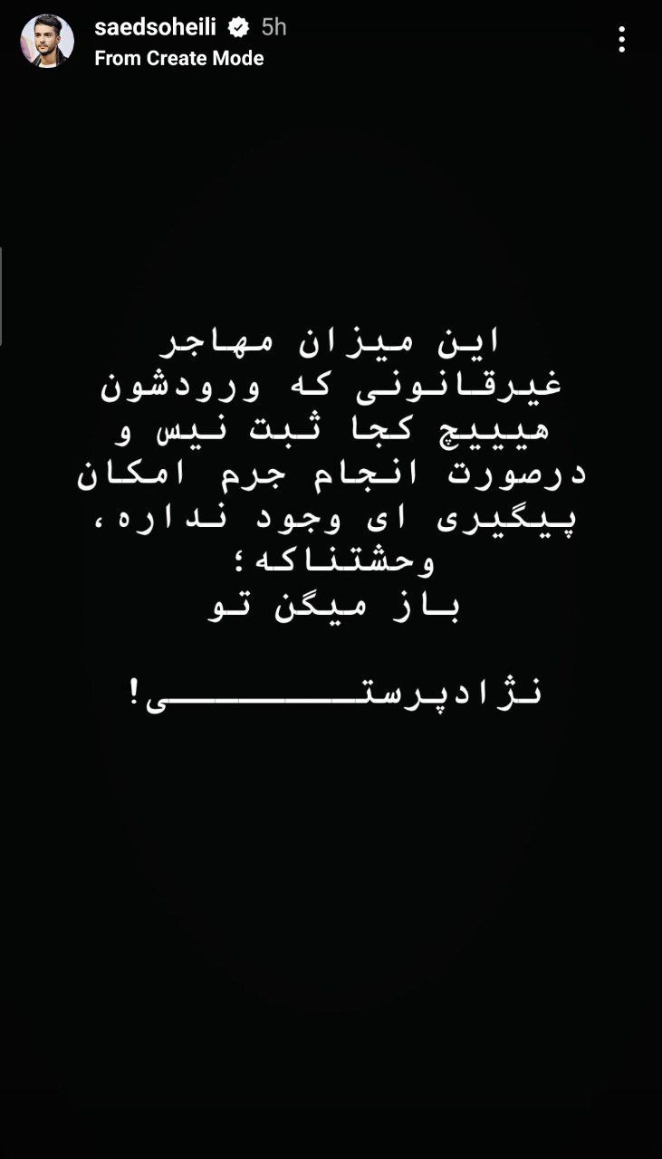 در همین راستا ساعد سهیلی بازیگر سینما و تلویزیون نیز به تازگی یک استوری منتشر کرده است که حسابی وایرال شده است.