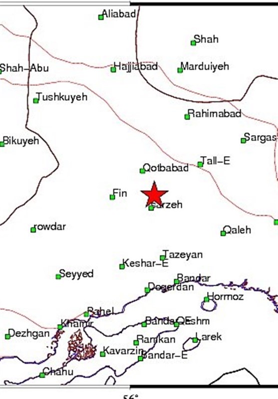 موقعیت رومرکز زلزله: 27.64 شمالی و 56.14 شرقی