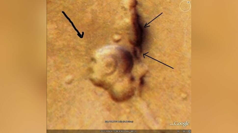 تصاویر با وضوح بالاتر نشان میدهند که این چهره یک کوه یا تپه نیست، بلکه یک گودال است، که در واقع کمی شبیه به سر انسان است، هر چند چیزی که در تصویر Google Mars شبیه یک چشم و ابرو به نظر میرسد، کمتر دیده میشود.