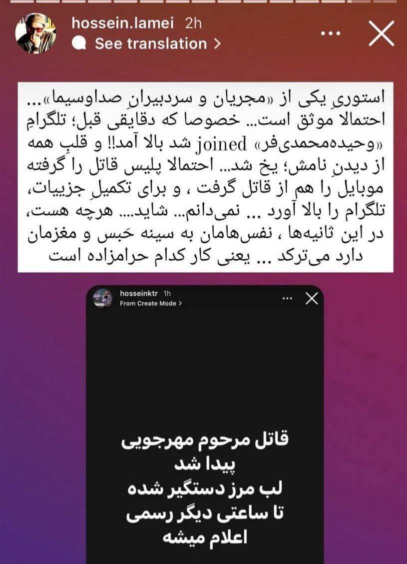 برخی از کانال های تلگرامی از دستگیری قاتل داریوش مهرجویی، حین فرار در لب مرز خبر دادن