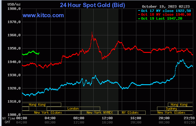 قیمت هر اونس طلا تا حدود ساعت 9 شب به وقت ایران بیش از 1953 دلاررسید در حالی که امروز در لحظه تنظیم این گزارش با 6 دلار کاهش به 1947 دلار رسید