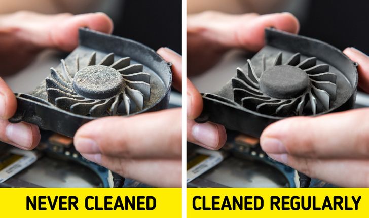 به مرور زمان، گرد و خاک و خرده های غذا لا به لای کیبورد جمع می شوند. این مشکل زمانی تشدید می شود که پای لپ تاپ غذا بخورید یا حیوان خانگی داشته باشید. و این مسأله نه تنها برای کیبورد، بلکه بیشتر برای فن های لپ تاپ مضر است چون آن ها را مجبور می کند برای درست کار کردن انرژی بیشتری صرف کنند.