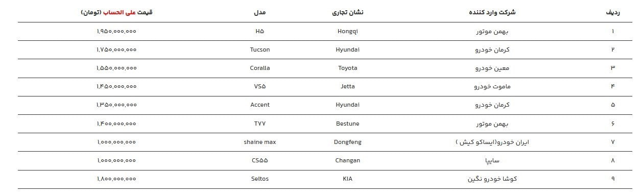 تبصره ۲- قیمت قطعی خودروهای مذکور پس از ارائه کلیه مستندات و مدارک مثبته و بر اساس آخرین ضوابط و مقررات تعیین و اعلام میگردد.