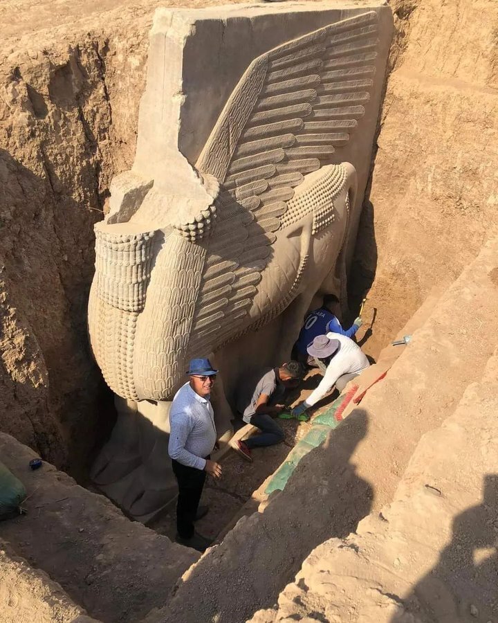 پژوهشگران موفق شدند بدن یک پیکرهٔ سهمتری گاومرد بالدار (لاماسو) را در عراق کشف کنند.