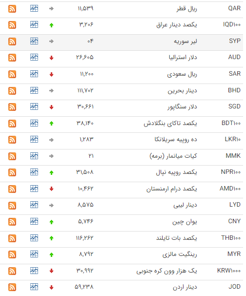 بر این اساس نرخ رسمی لير ترکيه، يکصد دينار عراق و یوان چين افزایش و نرخ پوند انگليس، یورو، یکصد ين ژاپن، دلار کانادا و دلار استراليا کاهش یافت.