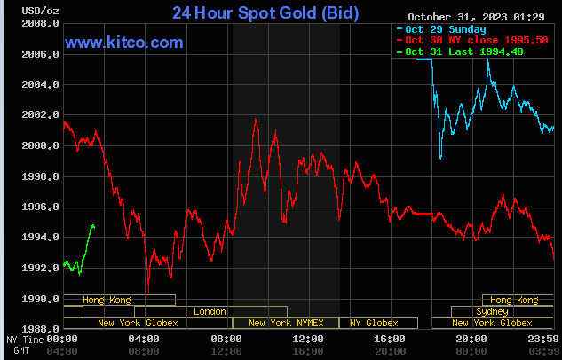 به گزارش سایت طلا،قیمت طلا که در روز جمعه برای اولین بار از ماه مه به بالاتر از 2000 دلار رسیده بود، امروز از این سطح فاصله گرفت و پایین آمد. حمله زمینی رژیم صهیونیستی به غزه آنقدرها که سرمایهگذاران انتظار داشتند گسترده نبوده است و از طرفی سرمایهگذاران نیز در آستانه نشست سیاستگذاری فدرال رزرو در این هفته محتاطانه عمل میکنند.