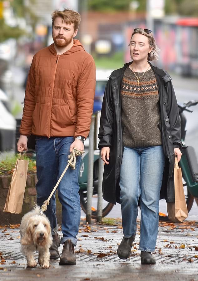 دوربین پاپاراتزی ها بوسه ی رونان به گونه ی مرد زندگی اش را نیز در جریان این پیاده روی ثبت کرده است.