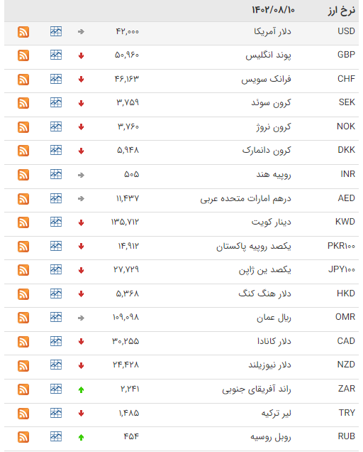 نرخ رسمی درهم امارات متحده عربی و افغانی افغانستان هم بدون تغییر باقی ماند.