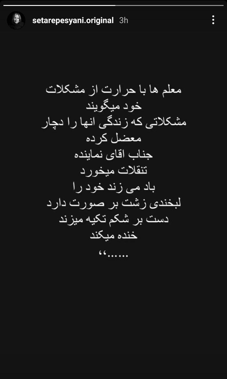 ستاره پسیانی، بازیگر با انتشار یک استوری از رفتار دور از شان علیرضا منادی، نماینده حوزه انتخابیه تبریز انتقاد کرد.