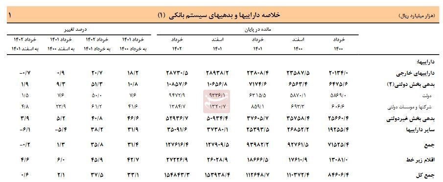 بنابراین گزارش، دارایی بانکها کشور در خرداد سال 1400 بیش از 8460 هزار میلیارد تومان بوده که این رقم طی دو سال گذشته بیش از 7000 هزار میلیارد تومان رشد داشته است.