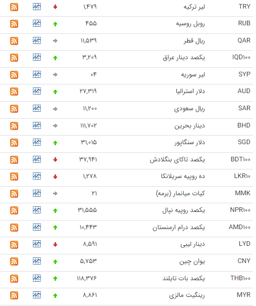 هر لیر ترکیه هم ۱۴ هزار و ۴۶۴ ریال خرید و ۱۴ هزار و ۵۹۵ ریال فروخته شد.
