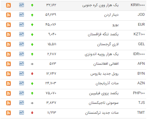 هر یورو هم، ۳۹۳ هزار و ۲۲۶ ریال خرید و ۳۹۶ هزار و ۷۹۷ ریال فروخته شد. هر پوند انگلیس هم، ۴۵۱ هزار و ۳۸۱ ریال خرید و ۴۵۵ هزار و ۴۸۰ ریال فروخته شد.