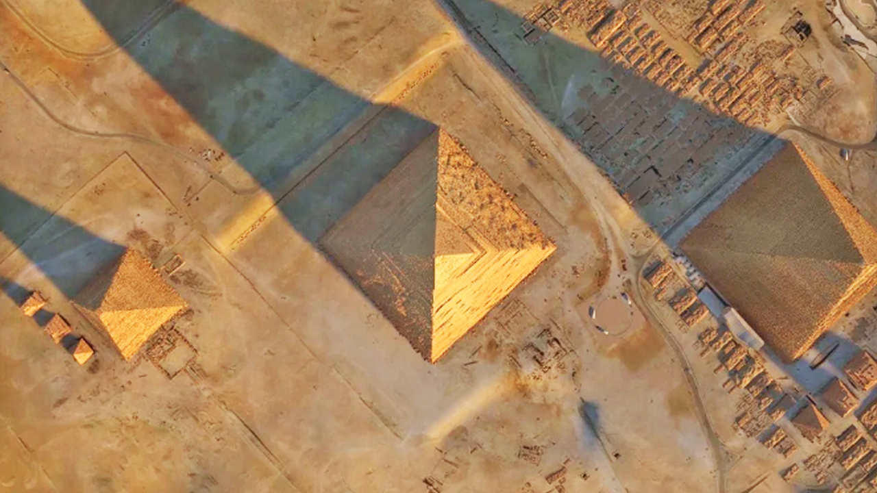 یکی از جنبههای بصری اهرام مصر که آنها را به یکی از عجیب ترین سازه های زمینی تبدیل کرده، استتار فوقالعاده آنها با ناحیه کویری اطراف است. با این وجود تشخیص آنها از فضا به دلیل آن که این سازهها در حقیقت محل اتصال ناحیه توسعه یافته شهری و بیابانها به شمار میروند، امکانپذیر است. اگر از ایستگاه فضایی بینالمللی به اهرام مصر نگاه کنید، آنها را شبیه به مربعهایی خواهید دید که بهطور جزیی توسط سایهها پوشیده شدهاند!