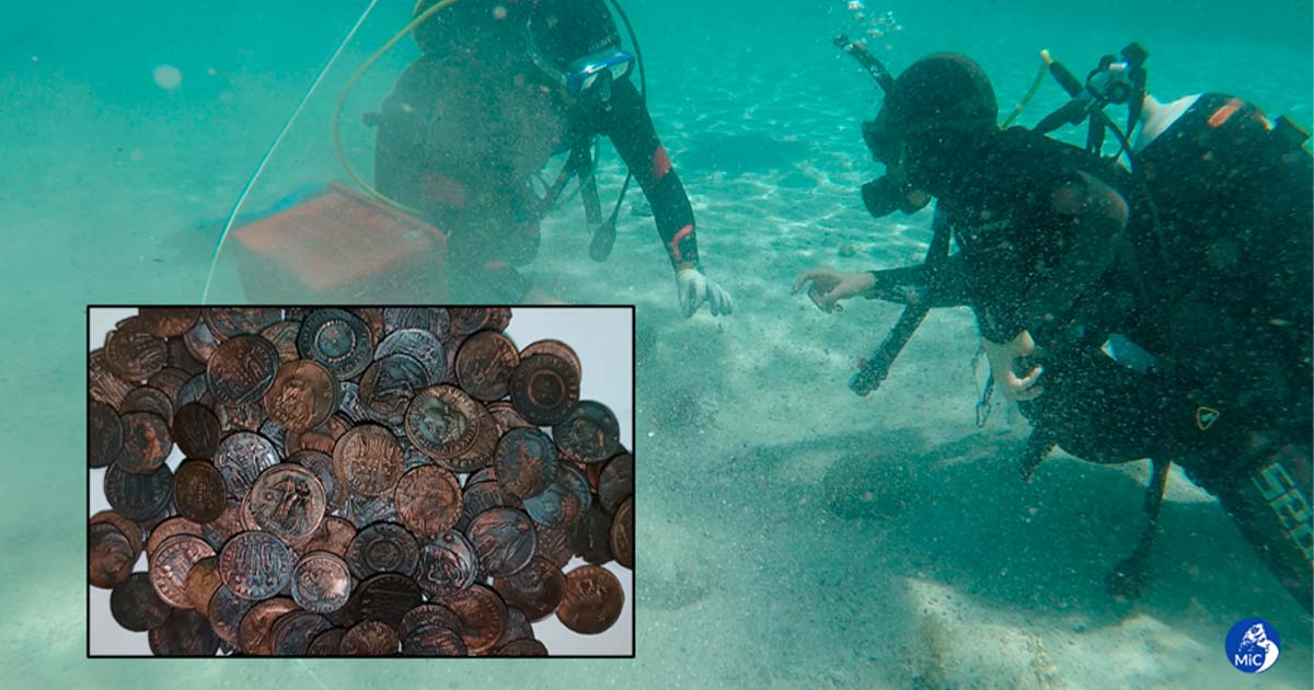 ده‌ها هزار سکه باستانی برنز در زیر آب‌های نزدیک سواحل جزیره ایتالیایی «ساردینیا» کشف شد.