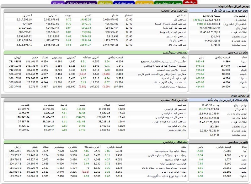 شاخص کل فرابورس نیز امروز با ۱۵۱ واحد افزایش به عدد ۲۴ هزار ۷۲۱ واحد رسید.