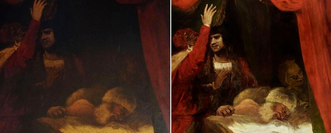 همانطور که جان چو، متصدی ارشد نقاشی و مجسمهسازی در مرکز میراث فرهنگی میگوید، زمانی که این نقاشی برای اولین بار در سال 1789 در گالری شکسپیر به نمایش درآمد، بیش از هر اثر دیگری در این نمایشگاه بحثبرانگیز بود. رینولدز با دادن شکل فیزیکی و هیولایی به کلام استعاری شکسپیر، برخلاف قراردادهای هنری آن زمان عمل کرده بود.