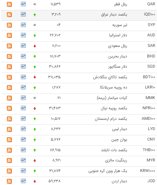 بانک مرکزی امروز یکشنبه، نرخ رسمی ۴۶ ارز را اعلام کرد که بر اساس آن نرخ ۲۹ ارز افزایش و نرخ ۱۱ ارز کاهش یافت، نرخ باقی ارزها ثابت ماند.