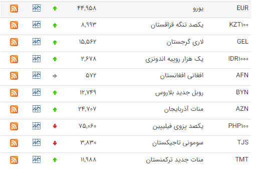 بر این اساس نرخ رسمی یورو، پوند انگلیس و ریال عمان افزایش و نرخ دینار کویت و یکصد روپیه پاکستان کاهش یافت.