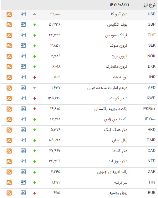 بانک مرکزی امروز یکشنبه (۲۱ آبان)، نرخ هر پوند را ۵۱ هزار و ۳۳۶ ریال و یورو را ۴۴ هزار و ۹۵۸ ریال اعلام کرد.
