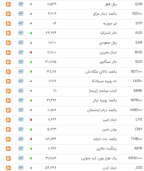 بانک مرکزی امروز یکشنبه، نرخ رسمی ۴۶ ارز را اعلام کرد که بر اساس آن نرخ 17 ارز افزایش و نرخ 10 ارز کاهش یافت، نرخ باقی ارزها ثابت ماند.