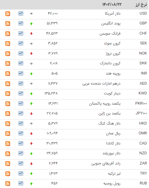 نوسان قیمت دلار و یورو 22 آبان 1402