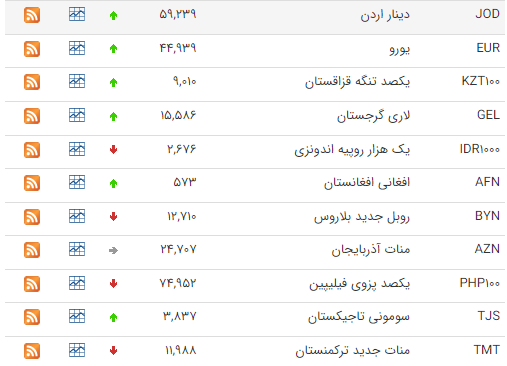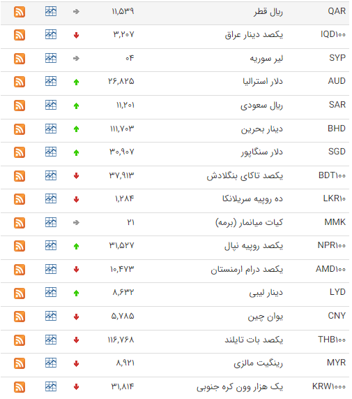 بر این اساس نرخ رسمی پوند انگلیس، یورو و دلار استرالیا افزایش و نرخ لیر ترکیه و یوان چین کاهش یافت. نرخ رسمی درهم امارات متحده عربی هم بدون تغییر باقی ماند.