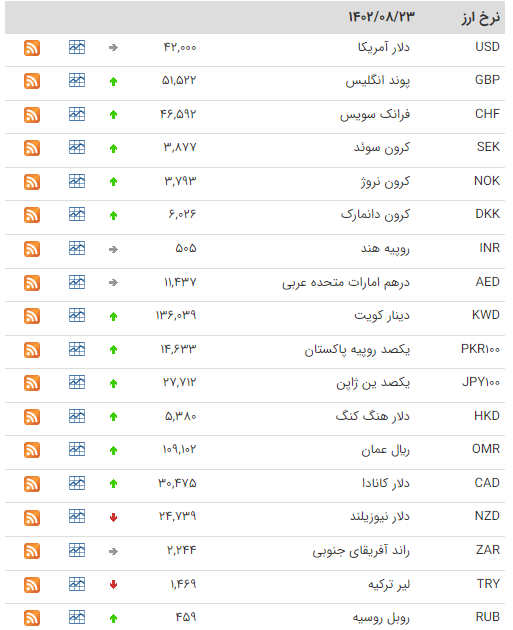 بانک مرکزی امروز سه شنبه (۲۳ آبان)، نرخ هر پوند را ۵۱ هزار و ۵۲۲ ریال و یورو را ۴۴ هزار و ۹۳۹ ریال اعلام کرد.