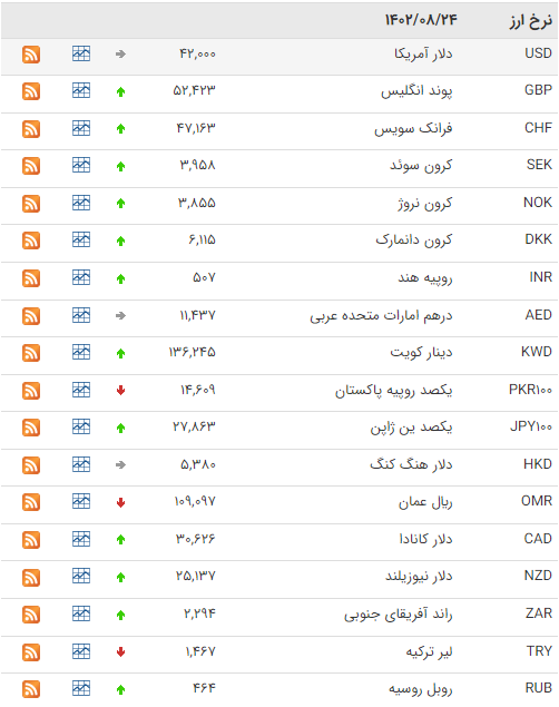 افزایش قیمت دلار و یورو 24 آبان 1402