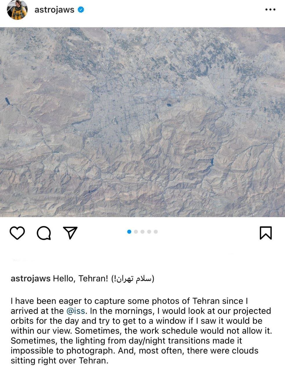 یاسمین مقبلی، فضانورد ایرانی، در این پست اینستاگرامی نوشت:«من از زمانی که به ایستگاه فضایی بینالمللی رسیدم مشتاق بودم چند عکس از تهران بگیرم.»