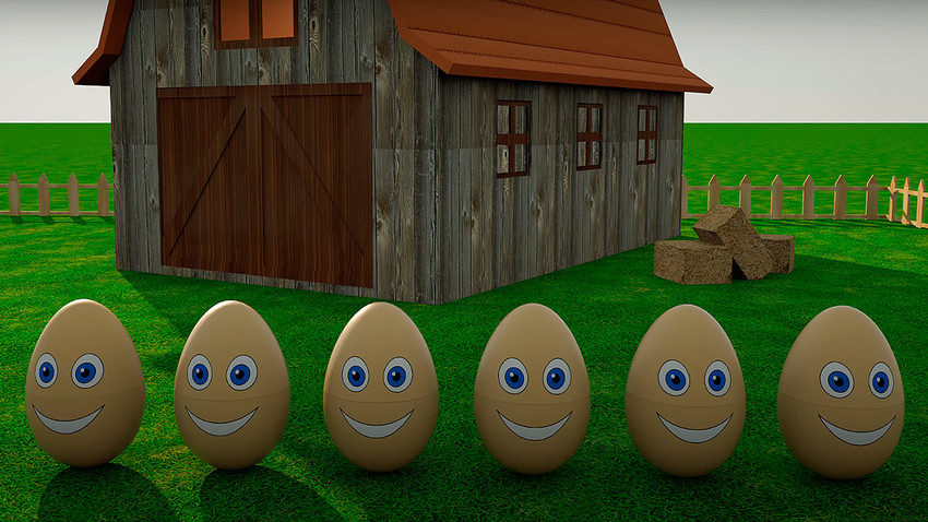 تخم مرغ های رنگی در مزرعه که در سال ۲۰۱۸ منتشر شد، دومین فیلم انیمیشن روسی این فهرست است. این ویدیو همانطور که از عنوانش پیداست با نشان دادن تخم مرغ های رنگی به بینندگان جوان خود، شش رنگ را به آن ها آموزش می دهد. با این حال، این ویدیوی ظاهراً آموزشی به دلیلی مثبت در این فهرست جای ندارد.