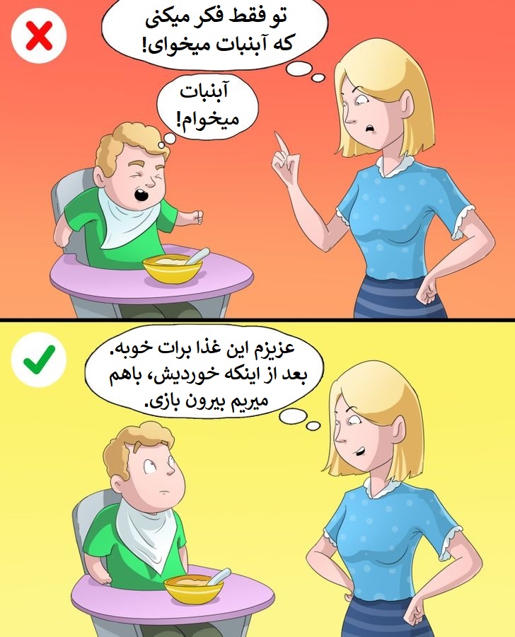 چه باید کرد؟ ببینید فرزندتان چه نیازها و خواسته هایی دارد. وقتی لازم است که عادت خوبی را یادش دهید، از خشونت پرهیز کنید و این کار را با لطافت انجام دهید.