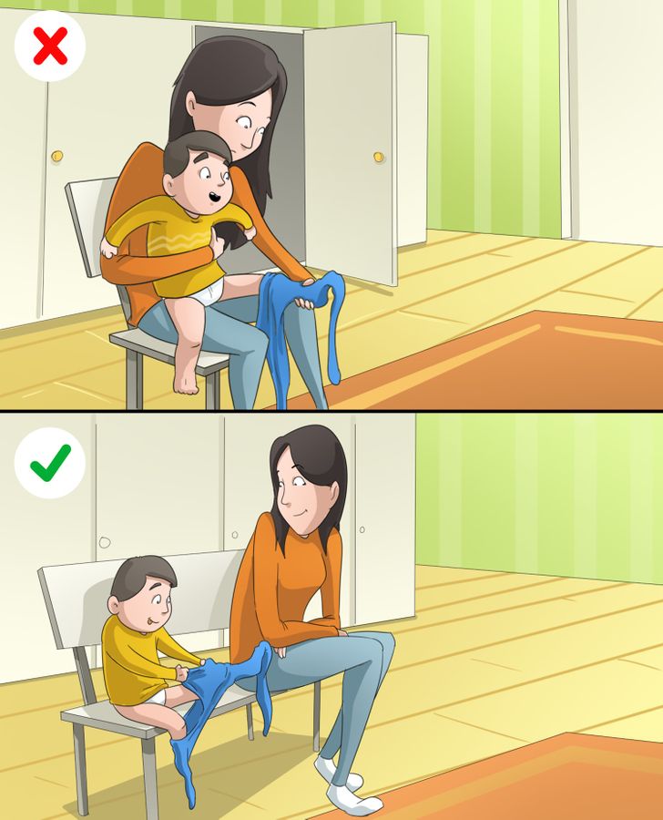 کودکان ۲ تا ۳ ساله دیگر می توانند لباس های مختلف را به تنهایی بپوشند و از تن درآورند، لیوان بشویند و لباس های کثیف را در ماشین لباسشویی بگذارند. به علاوه، در این سن، کودک واقعاً دوست دارد که خودش کارهایش را انجام دهد.